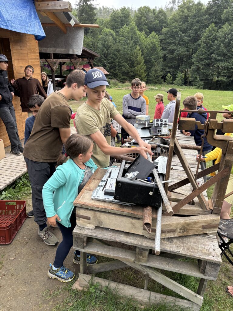 Letos si děti na táboře vyzkoušely, jaké by to asi bylo pracovat pro vesmírný korporát. Staly se zaměstnanci a zaměstnankyněmi firmy SMILE s.r.o., která se zabývá sběrem šrotu na opuštěných planetách a jeho následném znovupoužití.